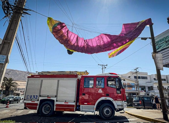 Parapente choca con cables en Iquique: graves quemaduras